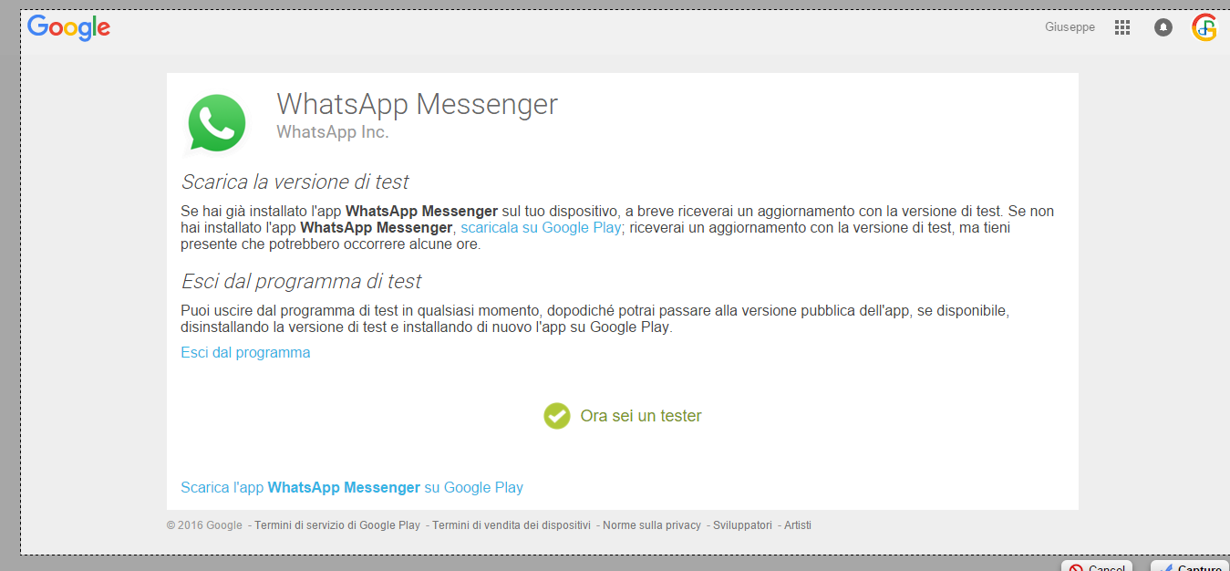 Tutte queste implementazioni sono state introdotte nelle ultime versione dell’ app di Whatsapp (dalla 2.12.453 alla 2.12.486). Se però non siete ancora tra coloro che dispongono della versione Beta,dovrete diventare dei tester dell’ app, andando su questa pagina. Successivamente vi sarà fornito un link allo store, da cui potrete aggiornare la vostra versione di WhatsApp all’ultima beta disponibile.